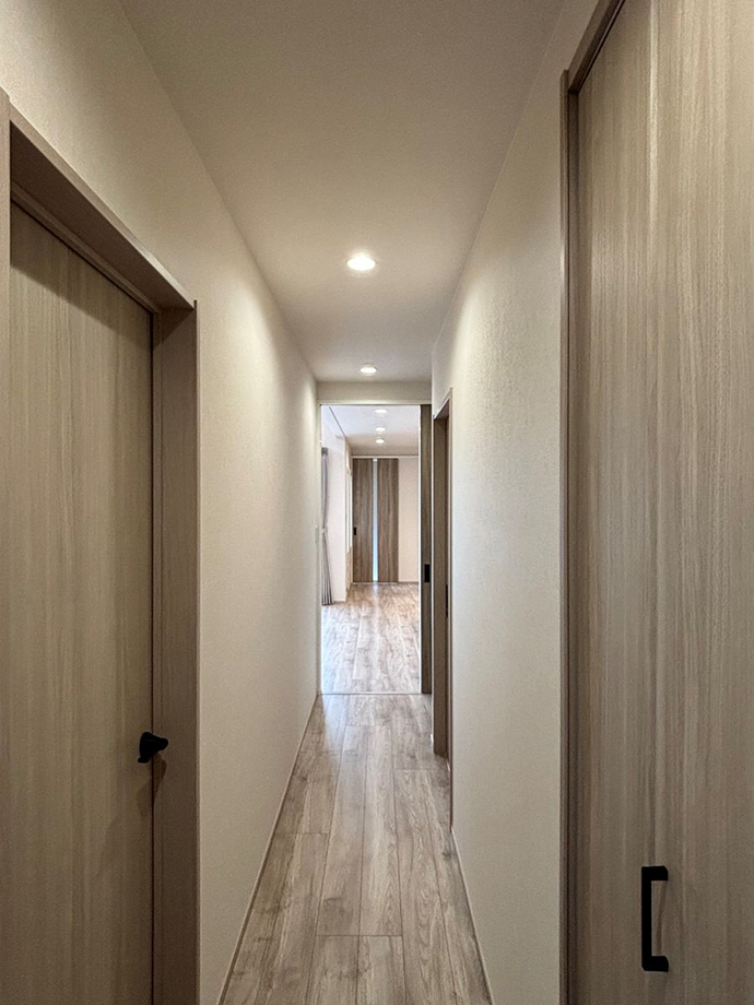 廊下にも共有収納を設け、暮らしやすさを高めています。