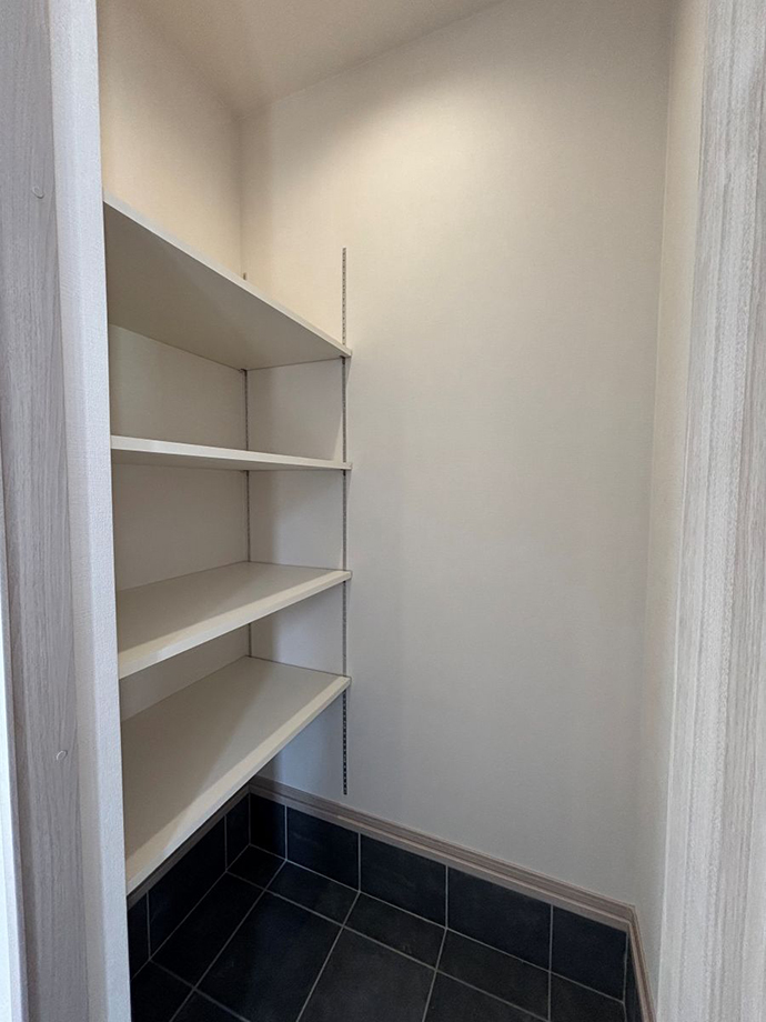 LDKには大容量のリビング収納とパントリーを配置。