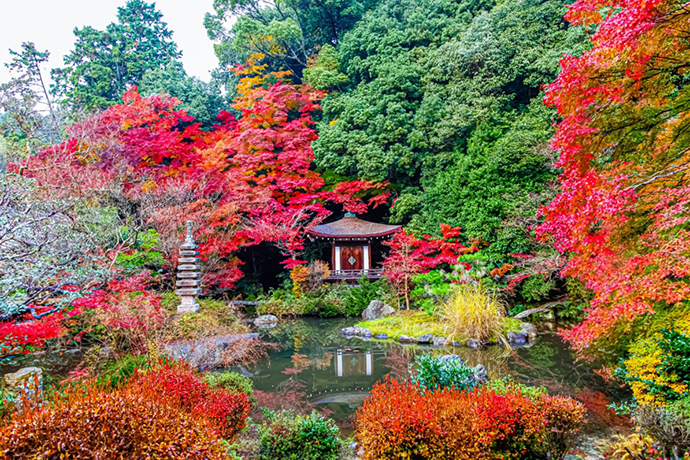 小野小町ゆかりの隨心院と、醍醐天皇が母の供養のために創建した勧修寺が有名で、いずれも美しい紅葉を楽しむことができます。