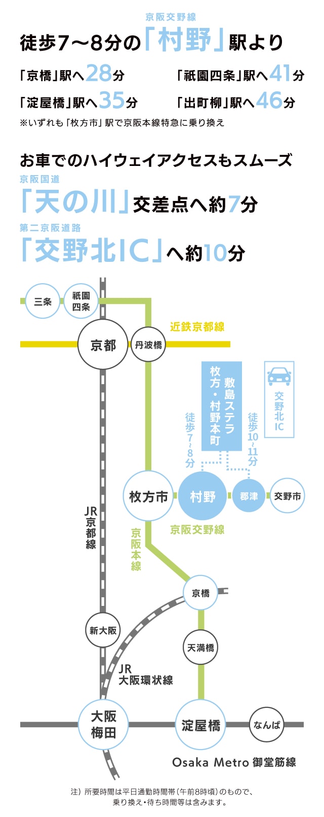 | 交通 | 京阪交野線「村野」駅 徒歩7~8分 京阪交野線「群津」駅 徒歩10~11分 |