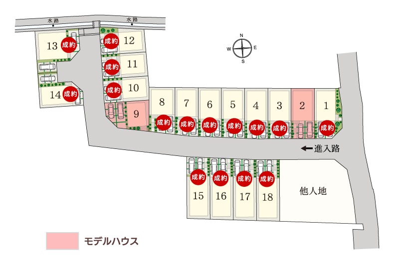 街区中央に幅員6mの道路を設けたクルドサック(袋小路)構造としています。部外者/車の通過を防ぎ、安全性を高めながら、小さなお子様の遊び場としても利用できます。