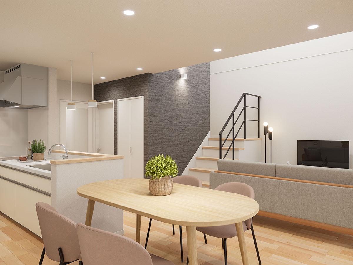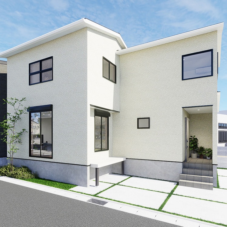 なお、外観形状の細部、外構イメージ、設備機器、電柱、電線等につきましては実際は異なる場合がございます。または表現しておりません。