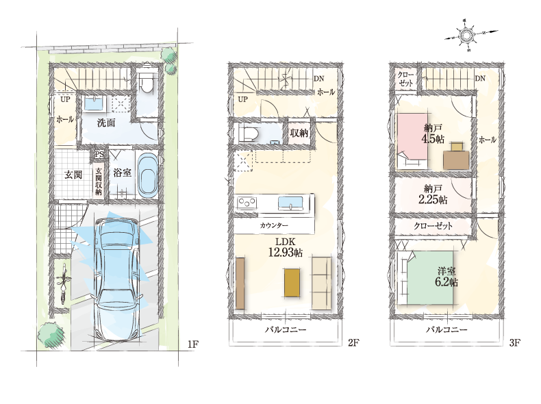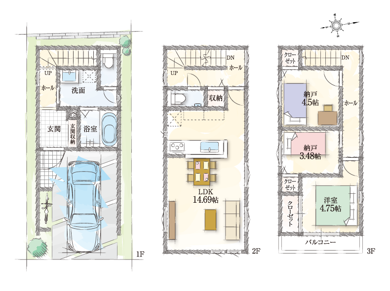 (プランA)限りある敷地を生かした都市型3階建てプラン。家...