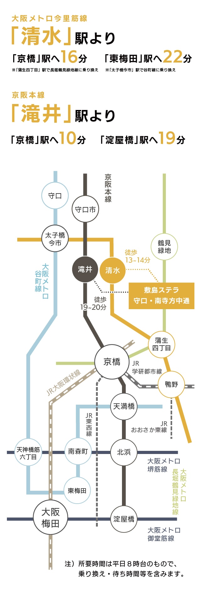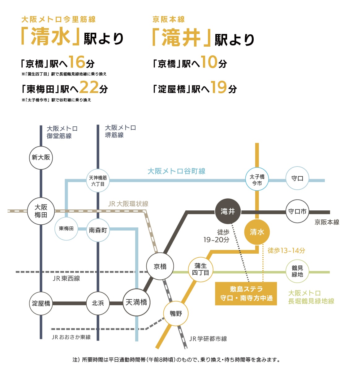 大阪メトロ&京阪。3駅2路線利用で、大阪市内へスムーズアクセス