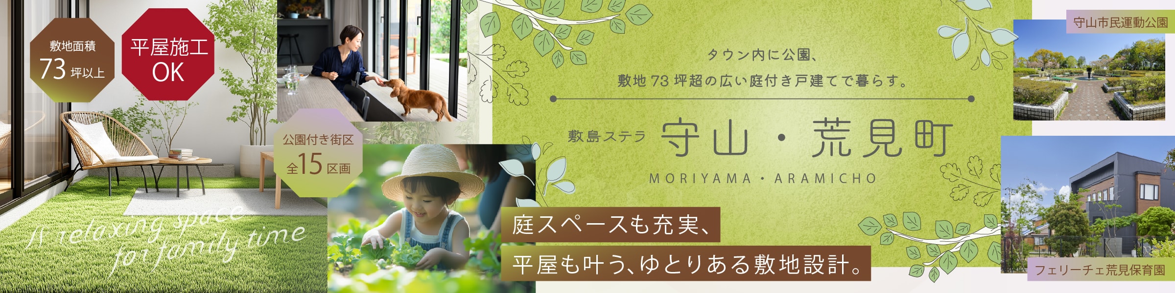 フェリーチェ荒見保育園(10~12分)、河西幼稚園(14~15分)、河西小学校(14~15分)、守山北中学校(5~7分)と保教施設も身近に。タウン内には提供公園も設けており、子育て中のママとパパを応援します。