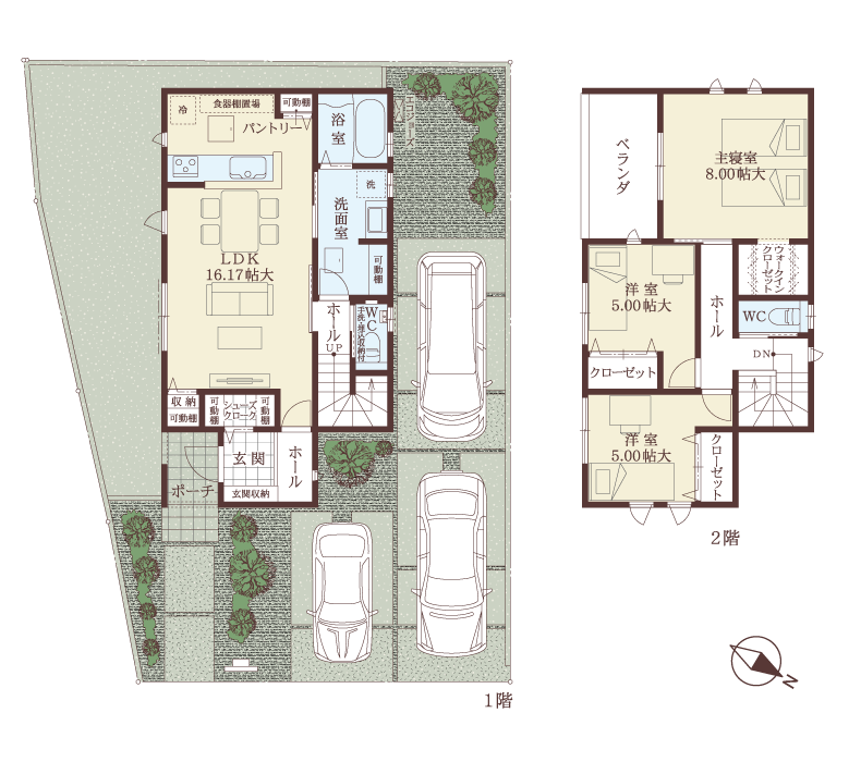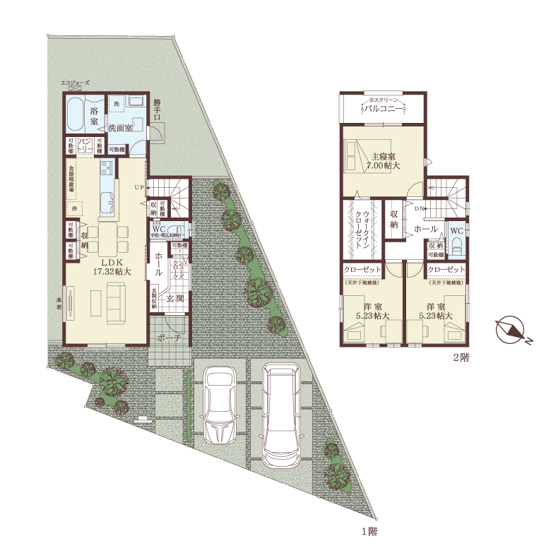 ◆イメージプランについて:改良のため、設計・仕様を一部変更する場合があります。また、カースペースは、車種により表記台数駐車できない場合がありますので、あらかじめご了承ください。