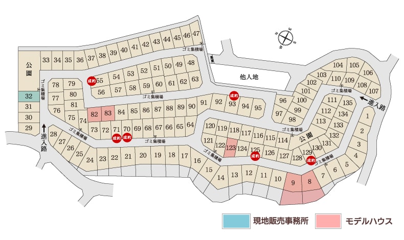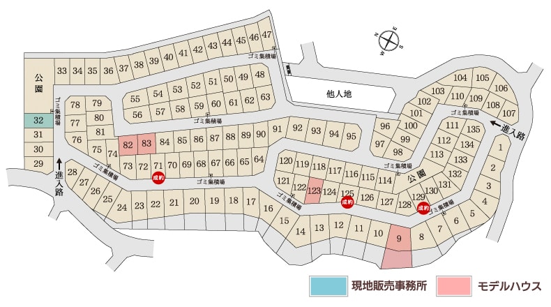 135区画のうち、現在販売中および公開中モデルハウスの区画を掲載しています。