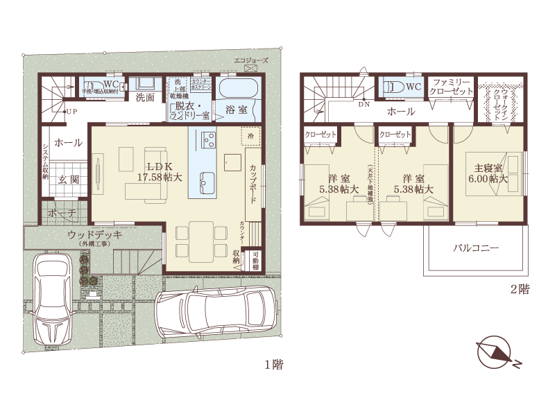 | 延床面積 | 94.39㎡(1戸)~105.98㎡(1戸) |