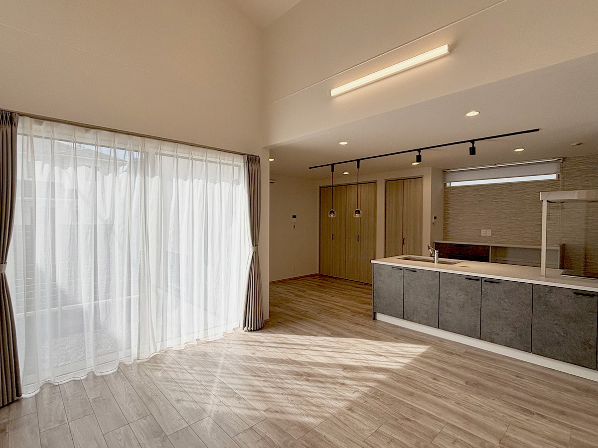18帖以上のLDKは吹き抜けもあり、心地よい開放感。