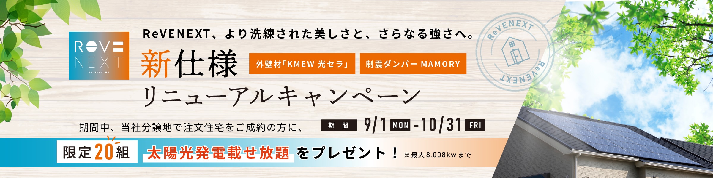 理想の住まいを叶えるブランド「ReVE NEXT(レーヴネクスト)」がさらに洗練された新仕様へとリニューアル! これを記念して当社分譲地で 開催期間:2025年9月1日(月)
