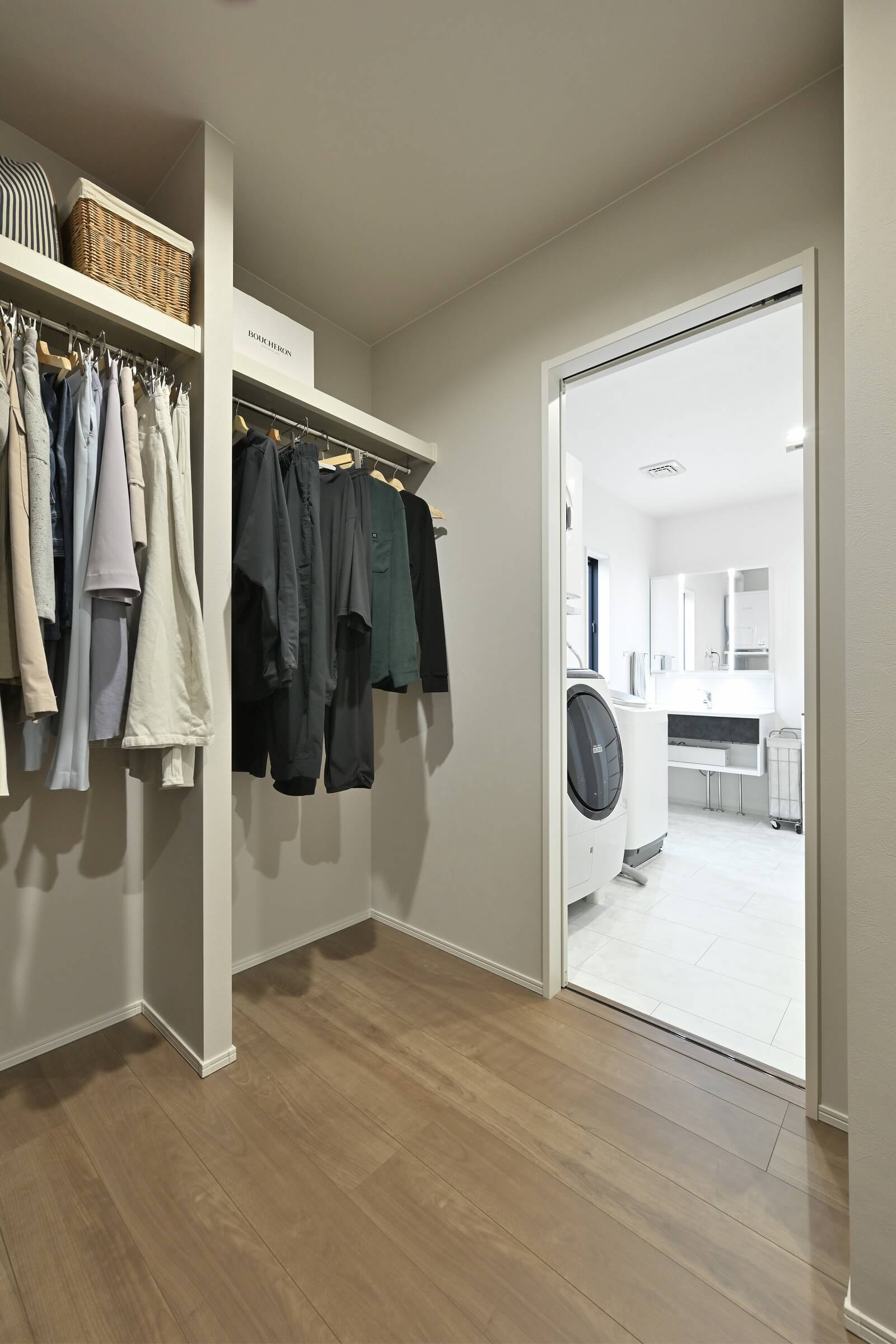 「家族以外に誰も上がってこないので、洗面室に入る扉を取りました。わざわざ開け閉めする必要も、圧迫感も要らないかなと思ったので」