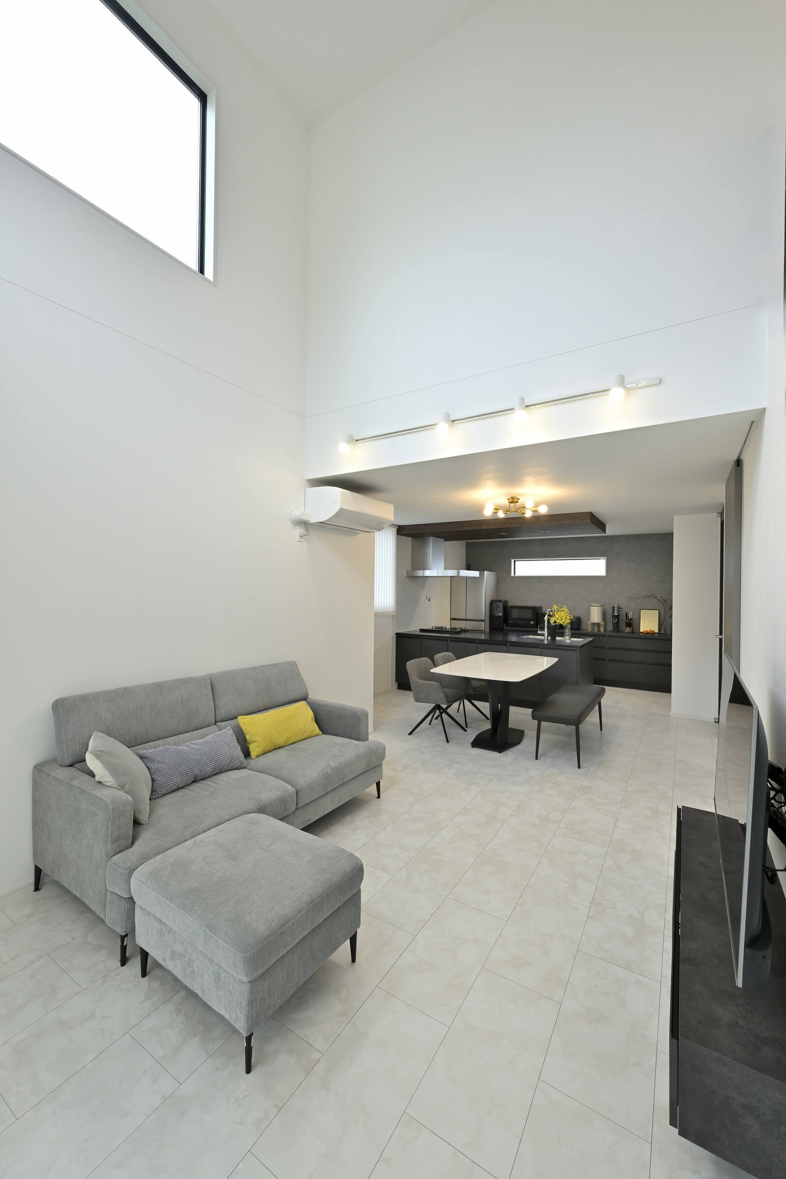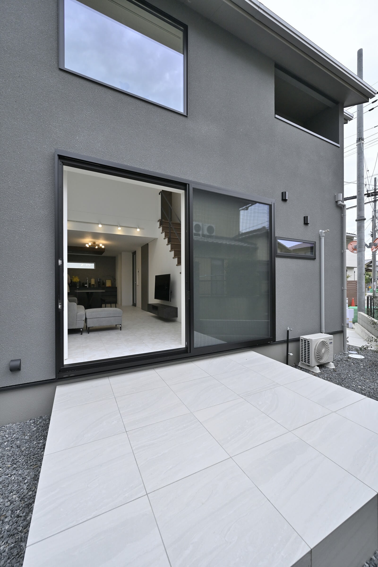 1Fと2Fの広さが同じ総2階建てを活かした吹き抜けとフレームレスの大開口で圧倒的な開放感。