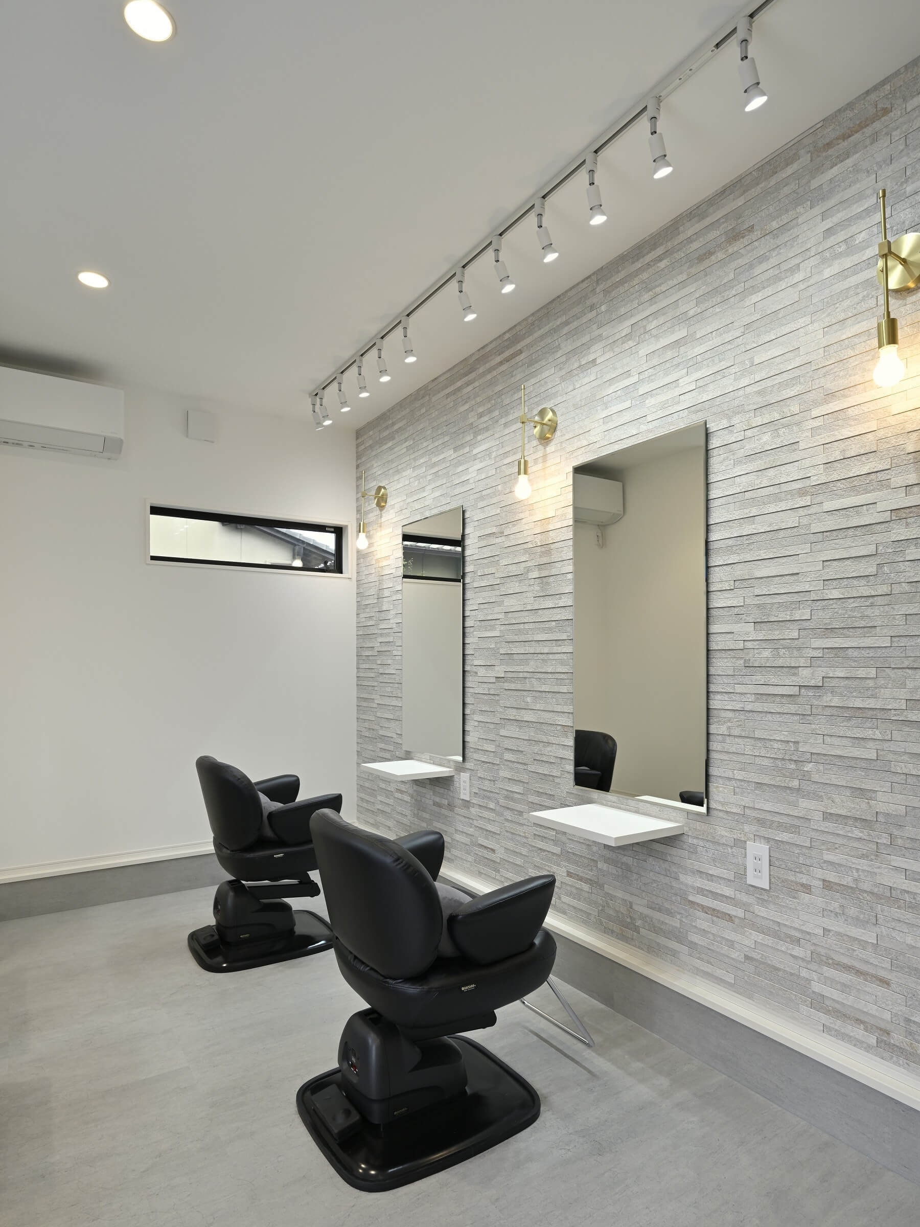 「いちばんの問題はお店と住空間のバランス。私は20帖近くあるリビングにしたかったので、夫との領土争いにまで発展しましたね(笑)」と奥様。そこで、浴室や洗面室といったキッチン以外の水廻りを2階へ移動。1階はご主人が営むヘアサロンとLDKのみというシンプルな間取りによって、大空間リビングを実現されました。