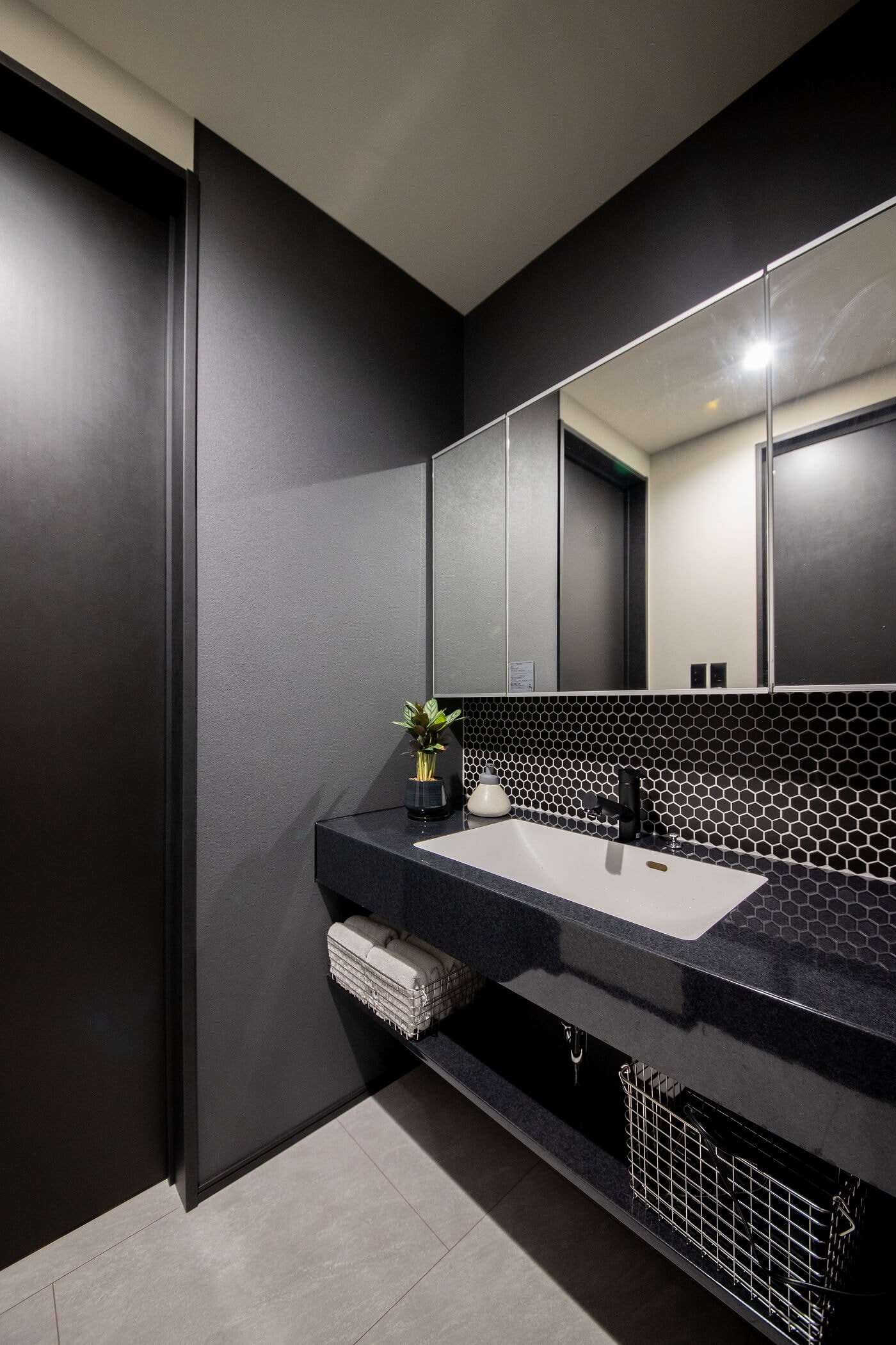 自らを〝凝り性〞とおっしゃるM様のお住まいは、生活感を排除したシンプルモダンなモノトーンスタイル。そのこだわりは驚くばかりで、「発売前の床材をどうしても採用したい」と、着工を2か月も延期されるほどでした。