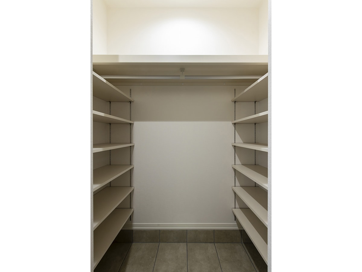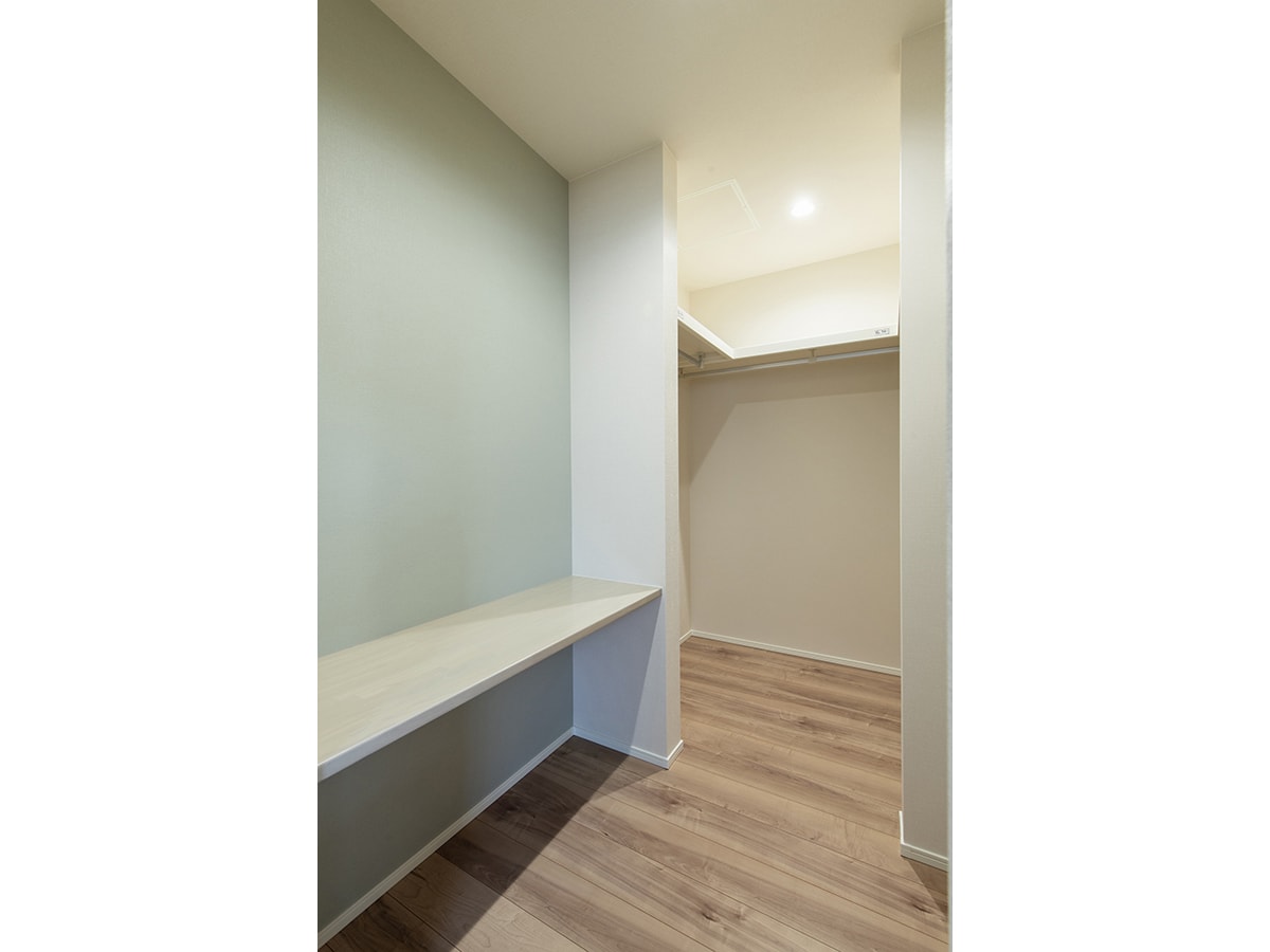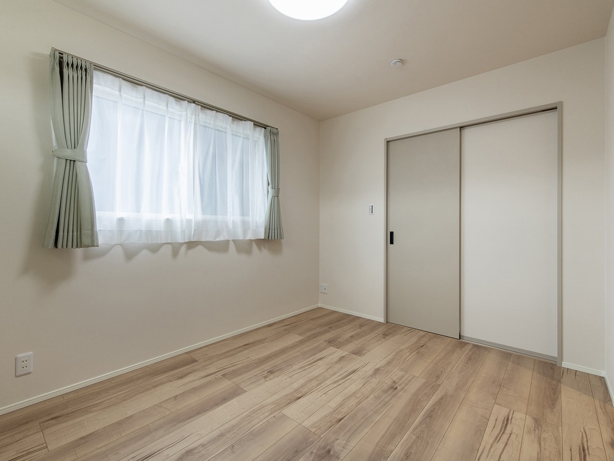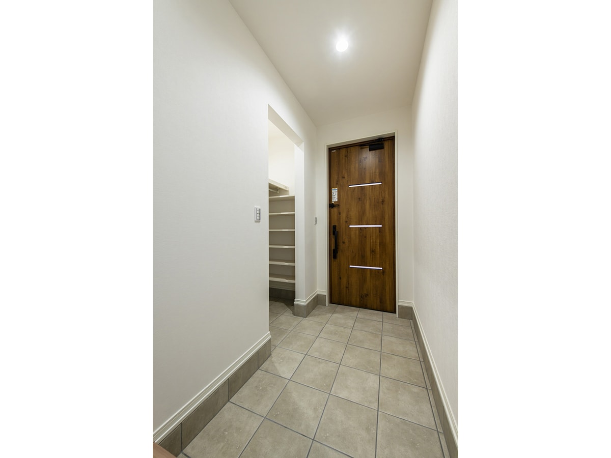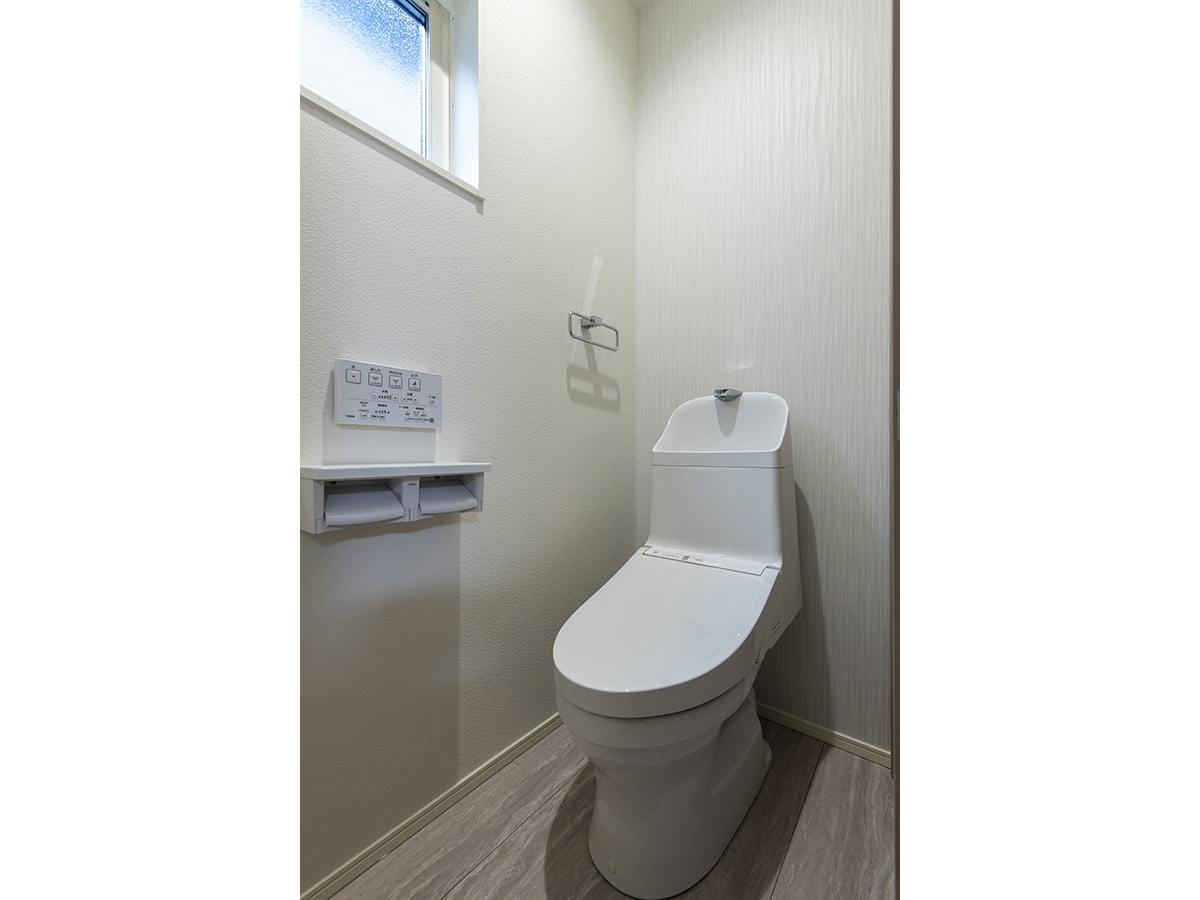 南東に開口を設けた開放的なリビングと、下がり天井のキッチンで空間にメリハリを…。洗面脱衣分離はじめ、階段下収納、パントリー、2階FCLなど機能も収納も充実。