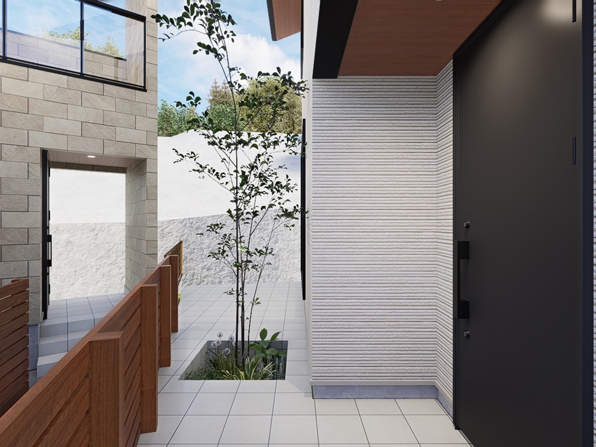 外構は設計図面を元に描いていますが、実際の外構と仕上がりが異なる場合があります。
