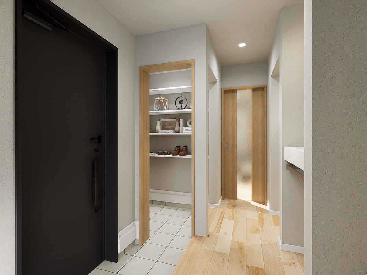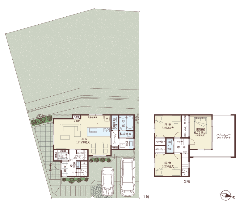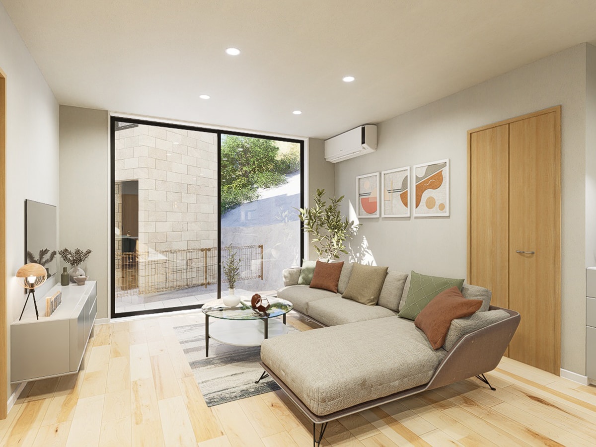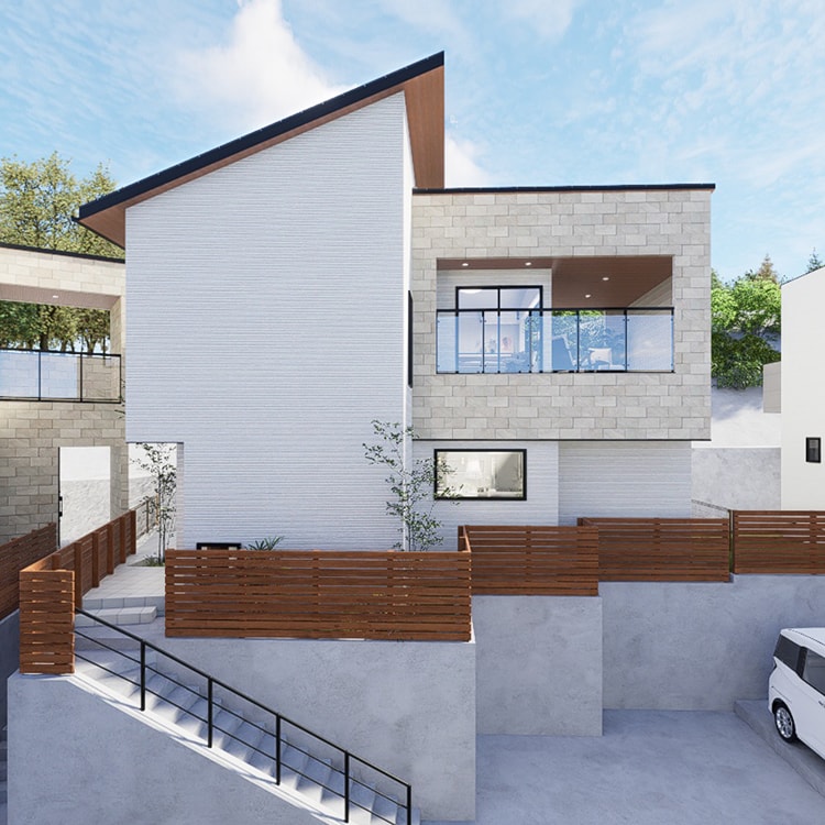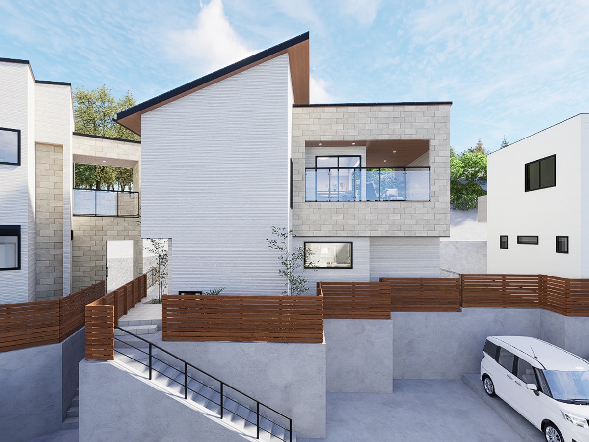 なお、外観形状の細部、外構イメージ、設備機器、電柱、電線等につきましては実際は異なる場合がございます。または表現しておりません。