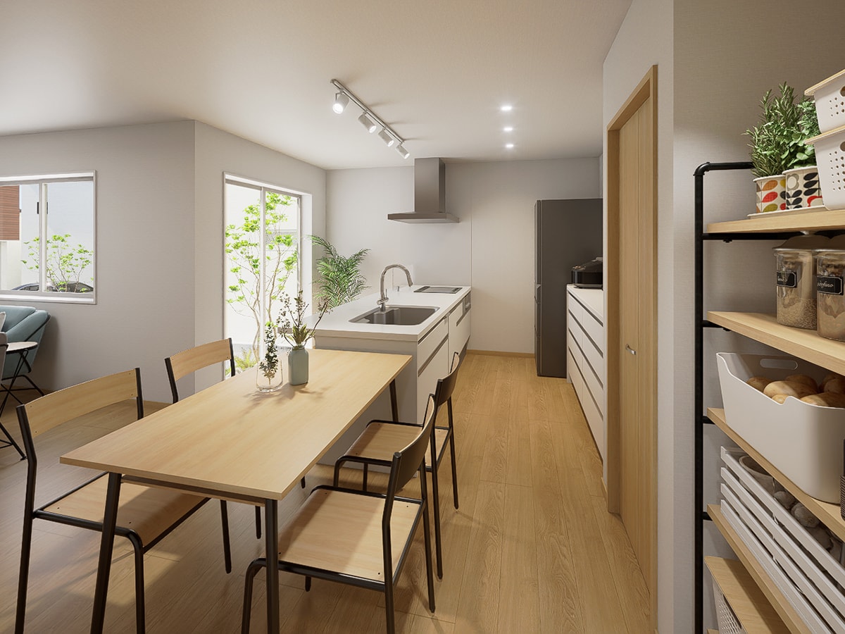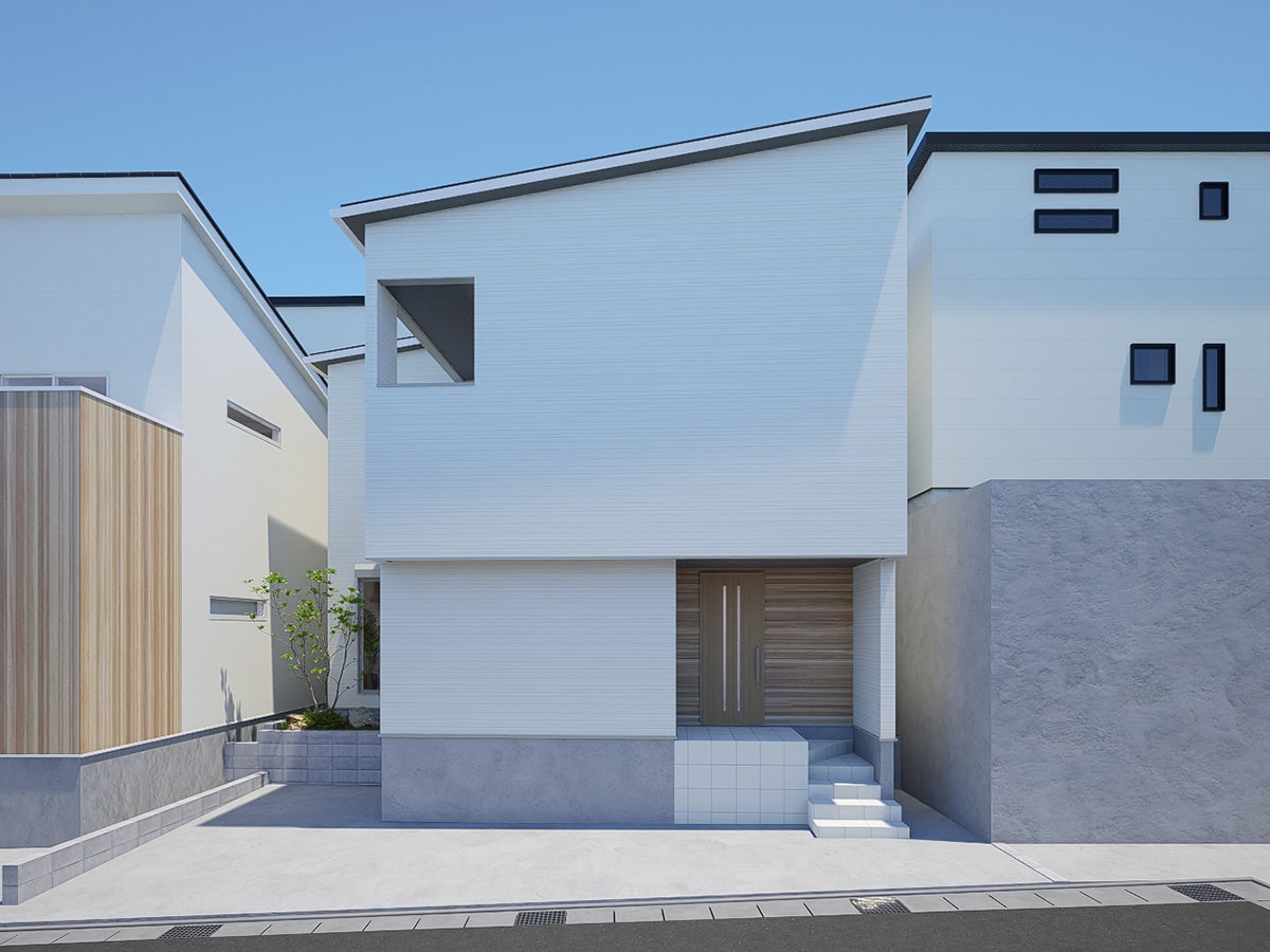 なお、外観形状の細部、外構イメージ、設備機器、電柱、電線等につきましては実際は異なる場合がございます。または表現しておりません。