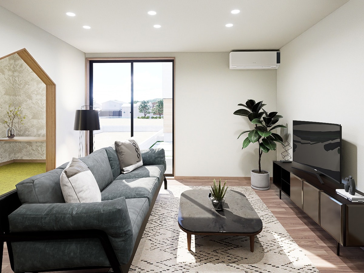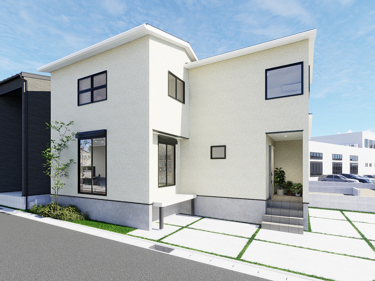 なお、外観形状の細部、外構イメージ、設備機器、電柱、電線等につきましては実際は異なる場合がございます。または表現しておりません。