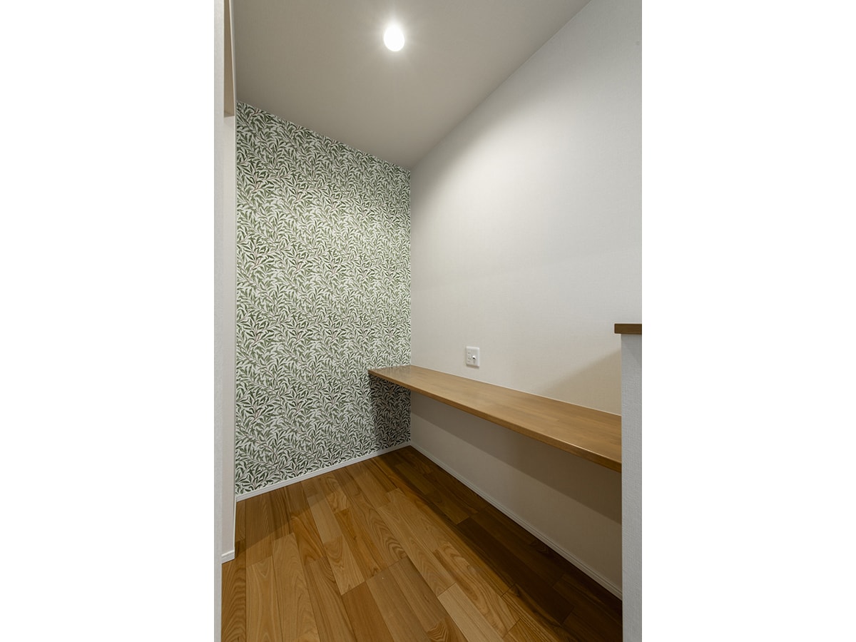 2階主寝室にはWICとロフト、カウンターコーナーを設けています。アクセントクロスでさりげなくゾーニングすることで、書斎や在宅ワークなどに集中できる空間づくりを演出しています。