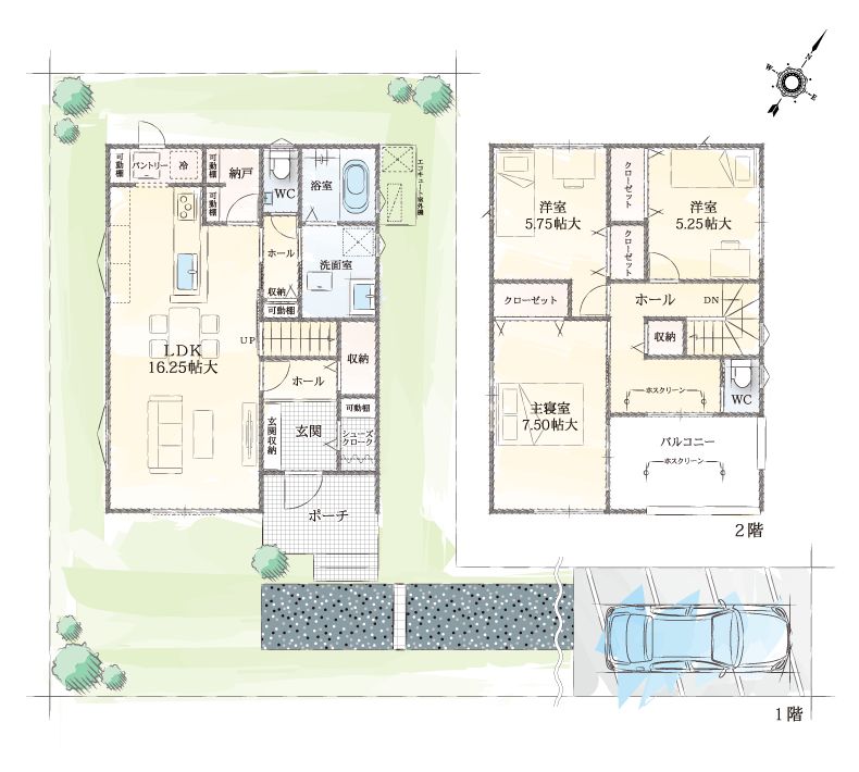外構は設計図面を元に描いていますが、実際の外構と仕上がりが異なる場合があります。