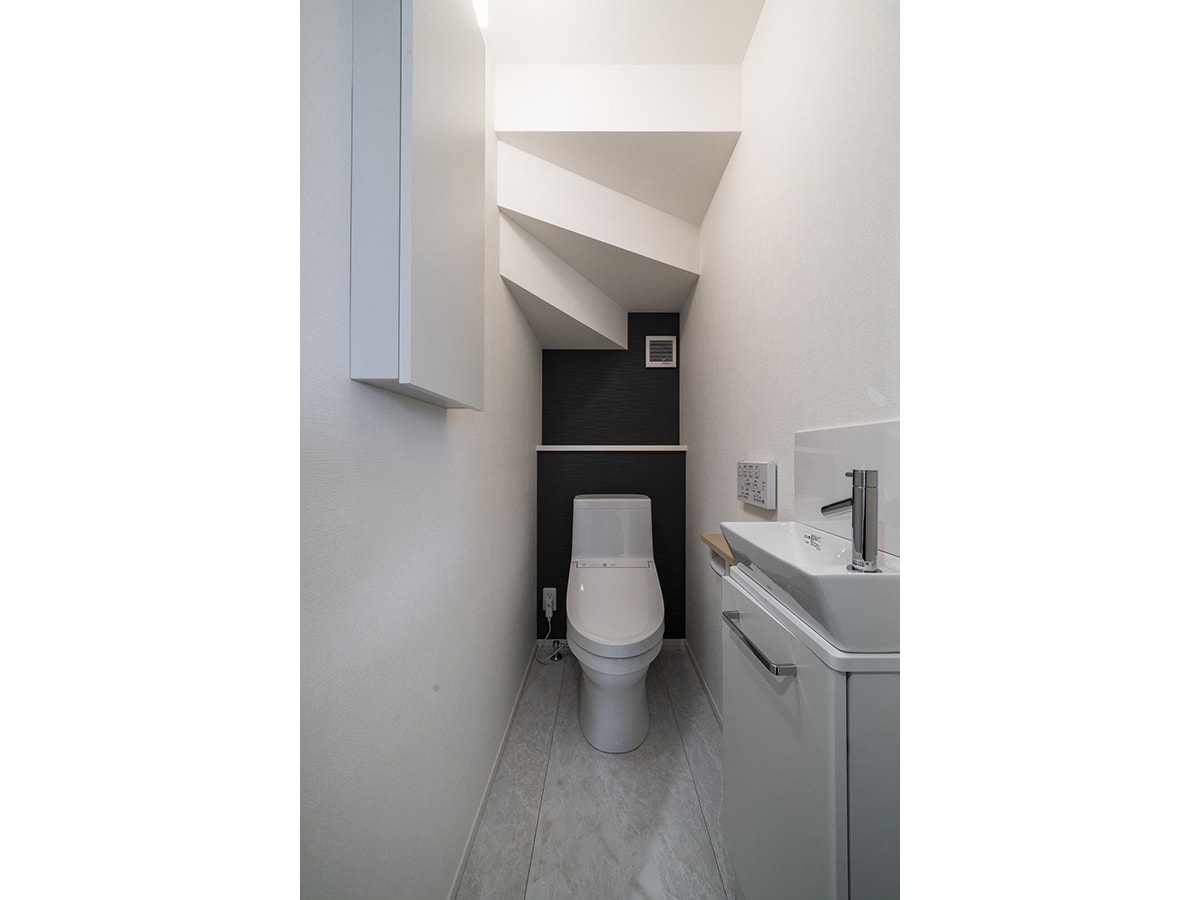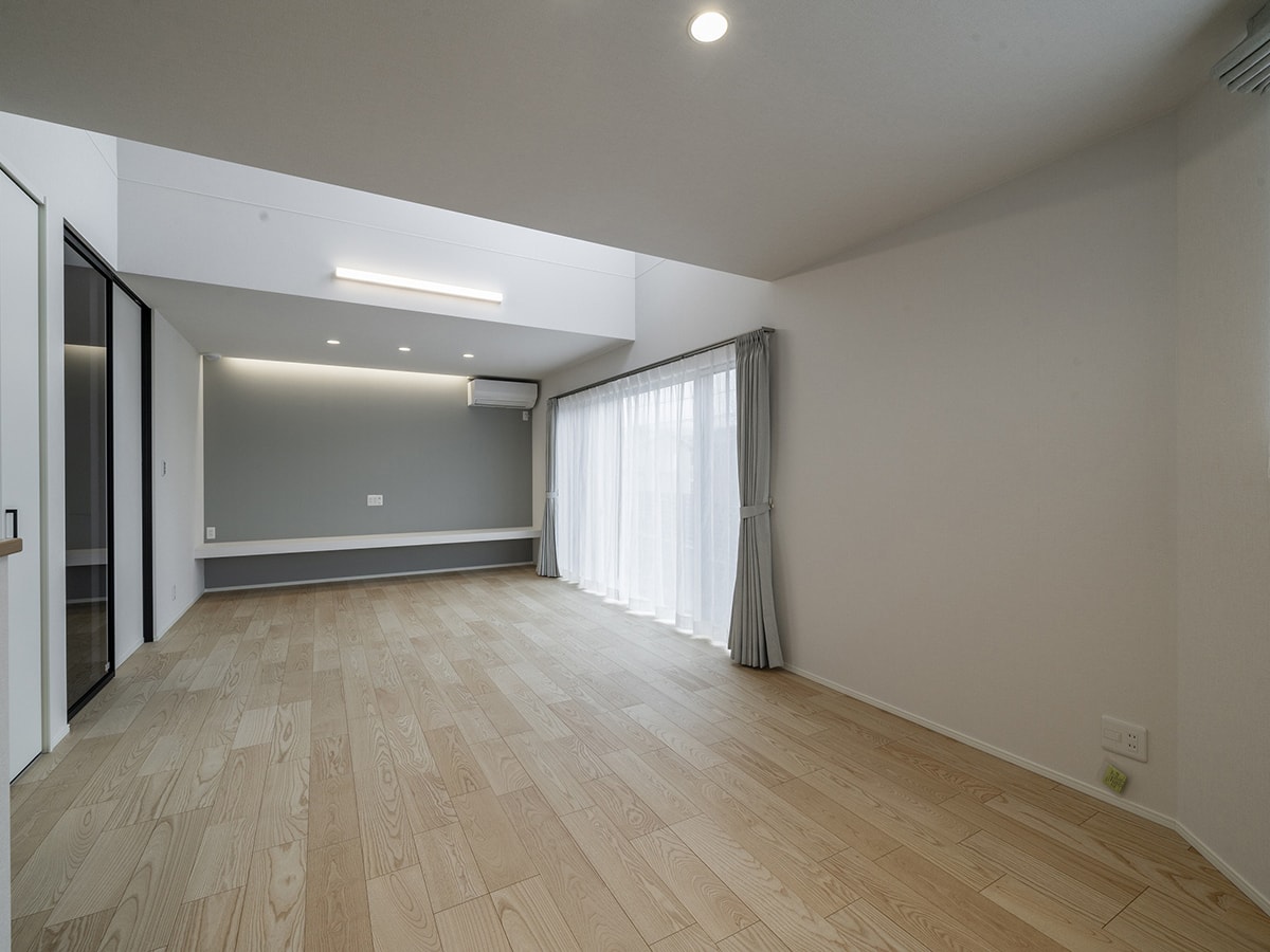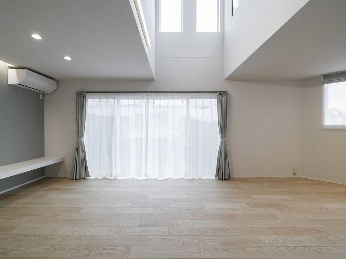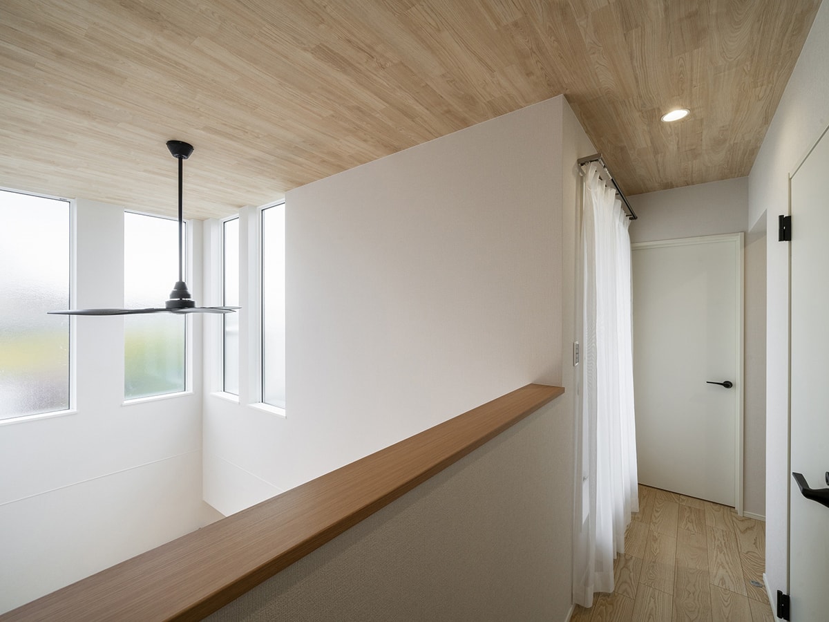 玄関のSCLから洗面・脱衣・浴室へと一直線。ホールからパントリー経由でキッチンへ。まさに効率重視の“神”動線プランです。高窓から陽光注ぐLDKの吹き抜けにも注目!!
