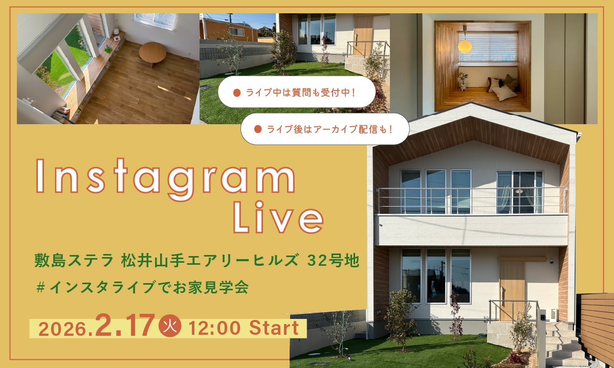 敷島住宅公式Instagramでは施工事例や提案プランの紹介やイベントの情報もいち早くお知らせしています。